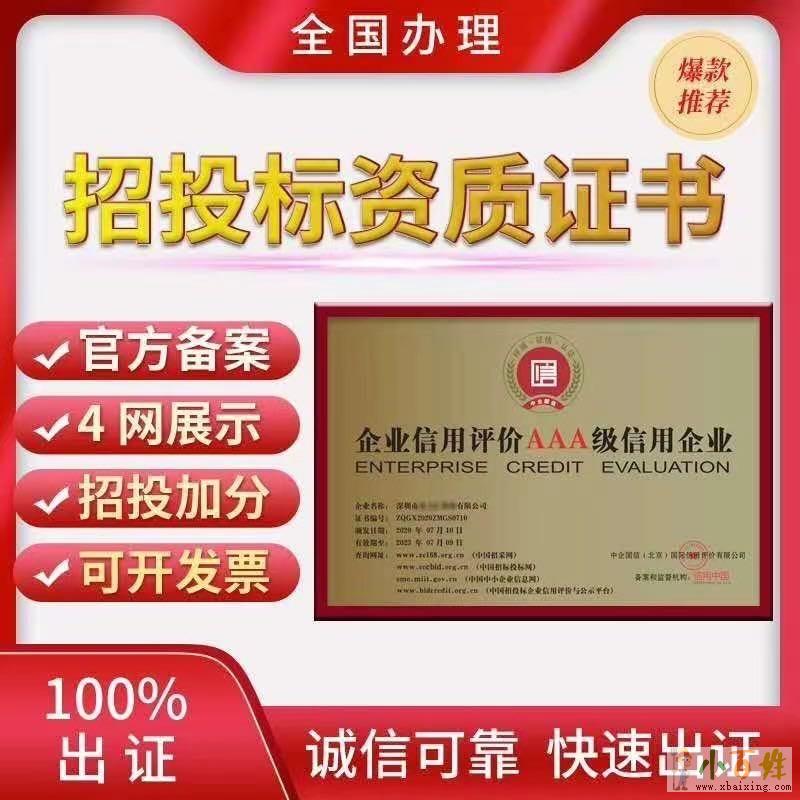 广东省AAA企业信用等级认证证书代办 可用招投标