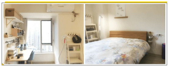 卧室既是工作区也是睡眠区,没有墙柜式的设计,业主选择的是木质的桌椅及简单的置物架,一个人的储物足够了x b a i x i n g c o m。空间小,不宜选择过于厚重和垂感式的灯具,会给人压抑的视觉感,拉低整个空间。充分运用床与墙面的狭窄空间,创造实用的收纳功能,大大提升了空间的使用效能。