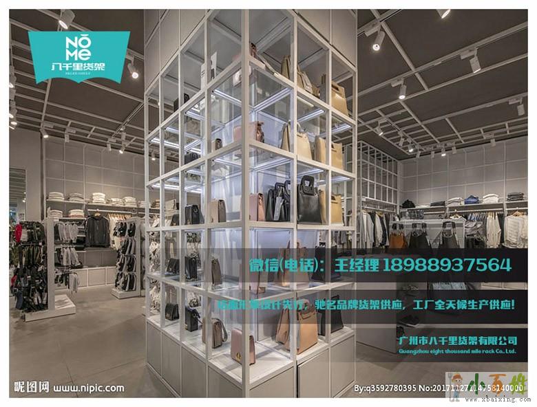 广州市八千里货架有限公司,专业生产定制服装货架,饰品货架,服装货架产品现货:KM男装货架,卡门服装货架,快