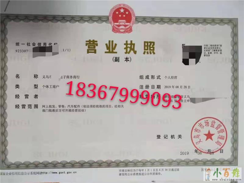 2.个体户名称:义乌市XX电子商务商行(工商随机)
