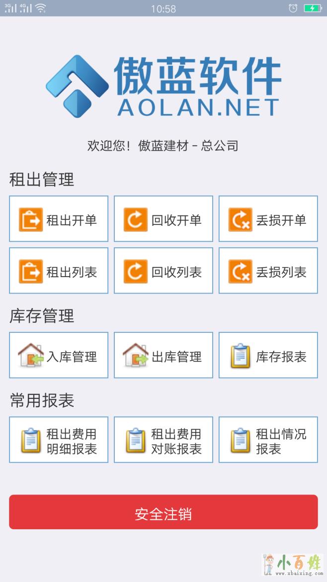 蓝格建材租赁管理软件手机app应用管理,可以使工地现场、仓库现场及业务员销售情况及时反馈给总部原文www.xbaixing.com。公司员工通过移动端手机APP,登记好每笔业务:租出、回收、丢损、施工、销售、入库、出库等x+b+a+i+x+i+n+g+c+o+m。信息及时反馈到总部,总部可以随时掌控各个工地的情况,及可用库存情况ueee。