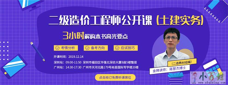 广东二级造价工程师土建实务公开面授备考课免费预约中!平地起网校,17年专注于建工类的培训专家。www.xbaixing.com